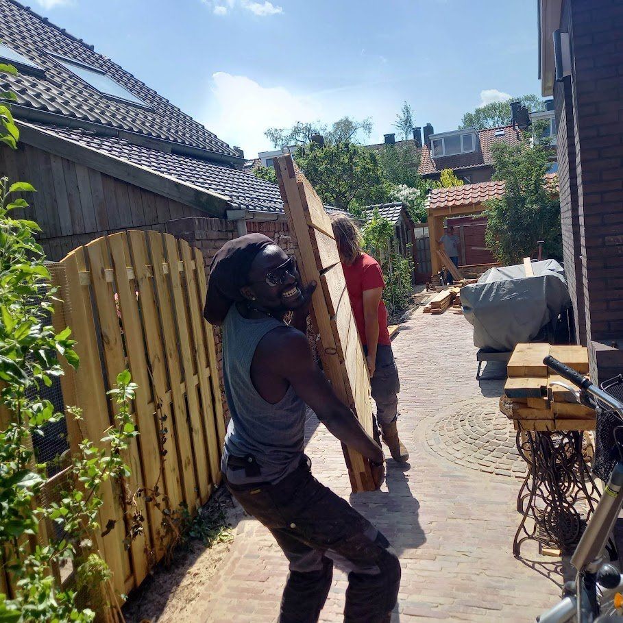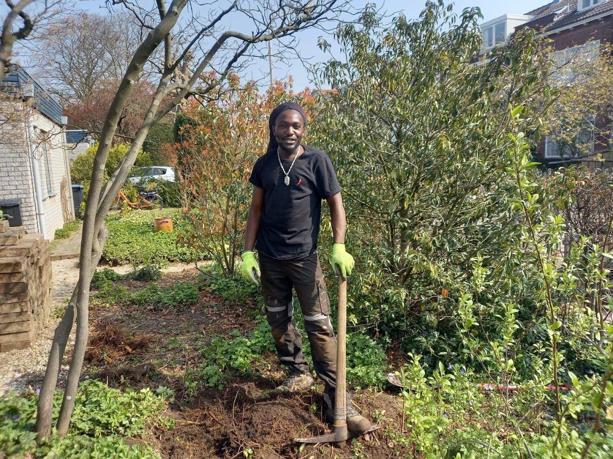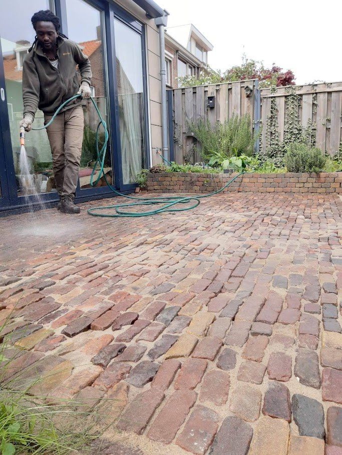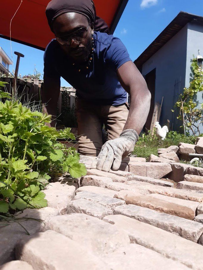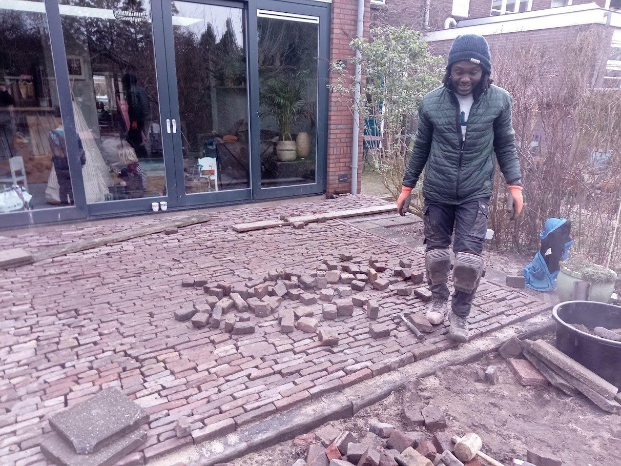 Zelfstandig ondernemer Bertrand is een waar kunstenaar met bestrating. Ook is hij zeer vaardig met snoeischaar, kettingzaag en ander tuingereedschap.